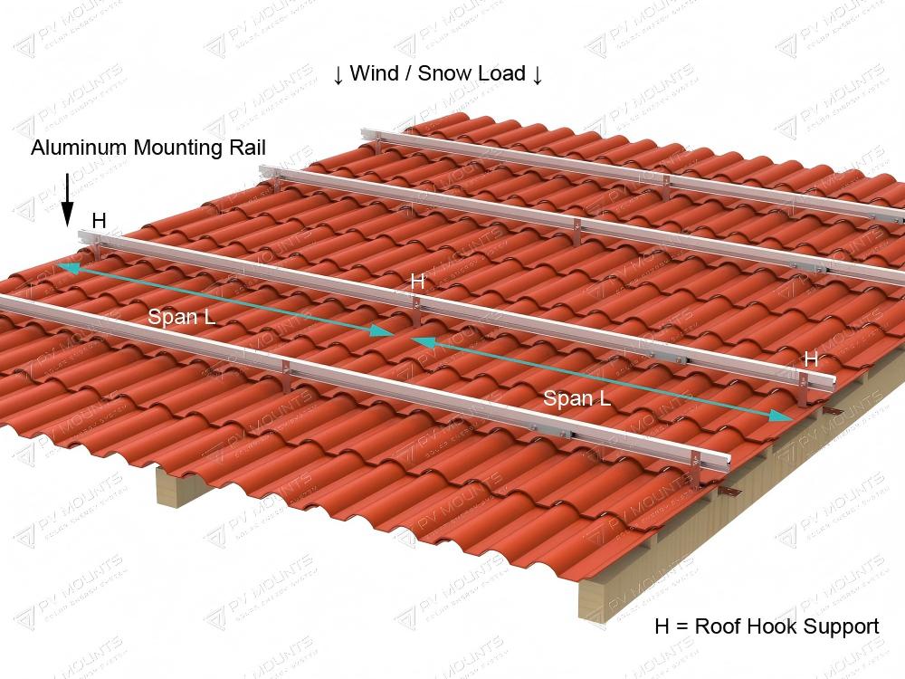 Roof hook spacing is a critical factor in the structural design of tile roof solar mounting systems. Proper spacing ensures that loads from solar panels are evenly distributed along mounting rails and safely transferred into the roof structure.